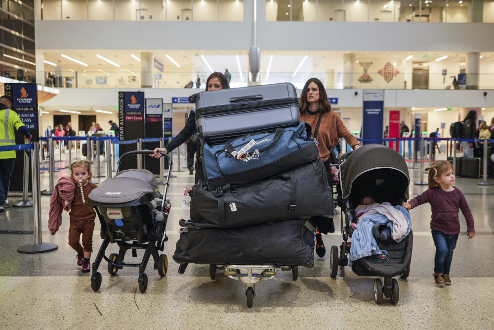 2024年11月27日,在美国洛杉矶国际机场,人们推着行李准备办理登机手续。新华社/美联