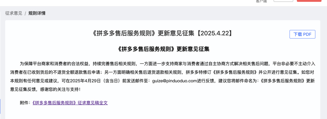 拼多多售后规则征求意见。