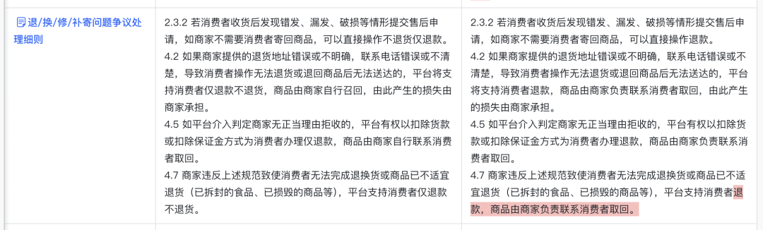 但各家电商平台在具体的售后规则修订上有些许差异。