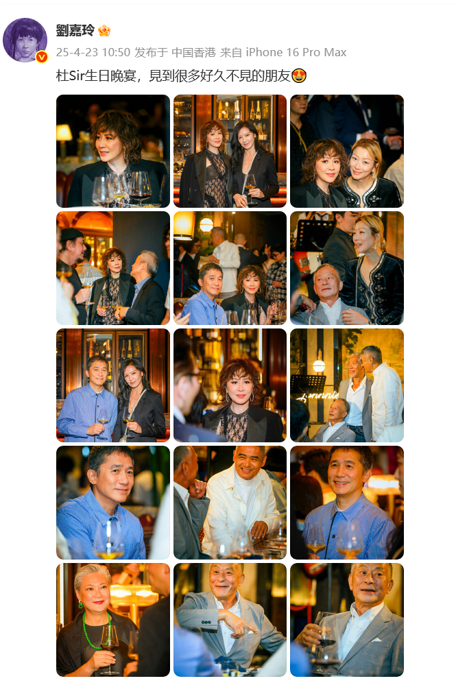 4月23日,刘嘉玲再次晒出一组当天的聚会照,林熙蕾、郑秀文、张耀扬等也露面为杜琪峰庆生,十分热闹。“杜Sir生日晚宴,见到很多好久不见的朋友。”