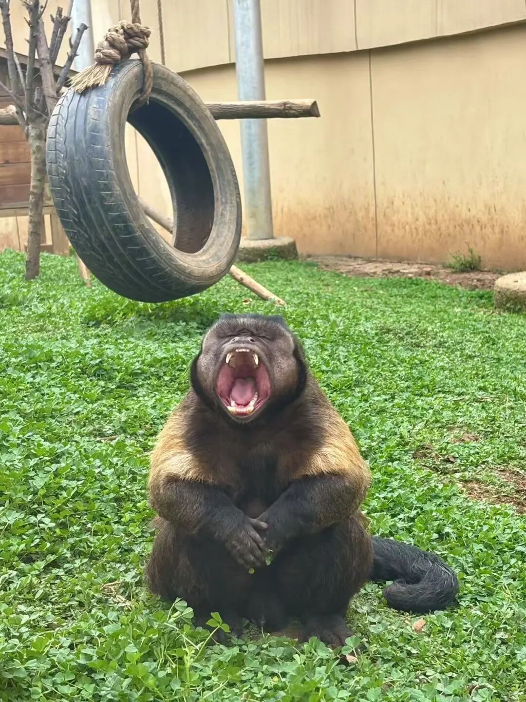 合肥野生动物园目前一共有四只黑帽悬猴,两只雄性(大壮和弟弟)、一只雌性(小美),还有一个小猴宝。最近爆火的大壮,2015年来自杭州动物园,现已在合肥居住十年了。