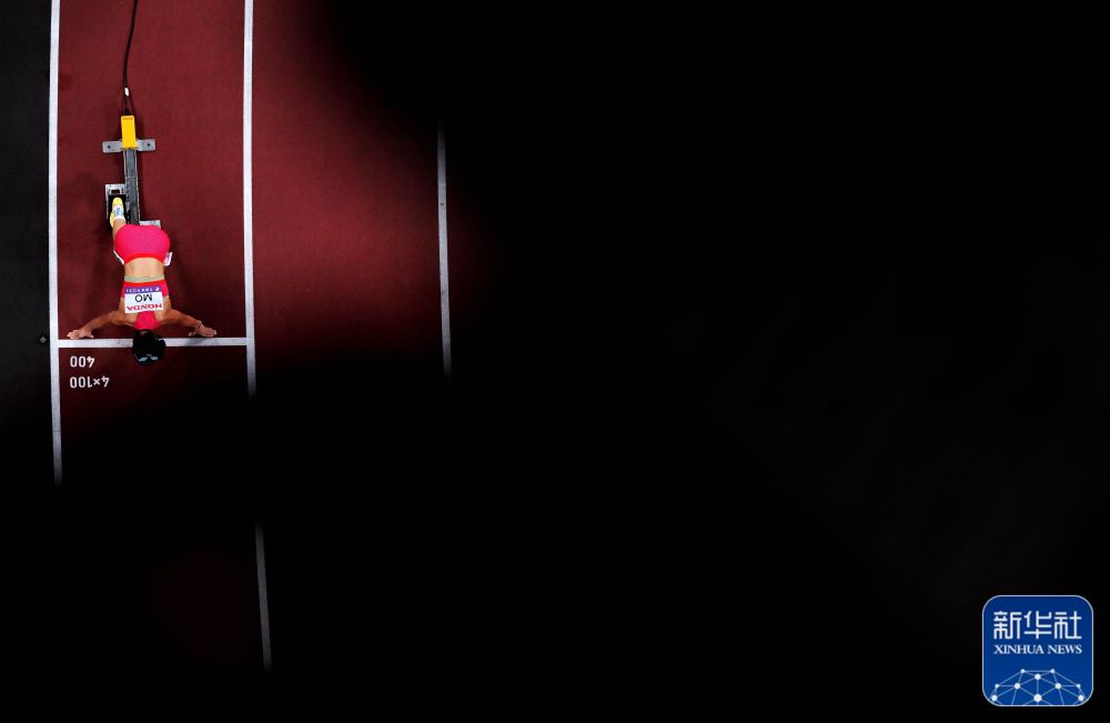 ↑莫家蝶在半决赛中准备起跑。新华社记者 李明 摄