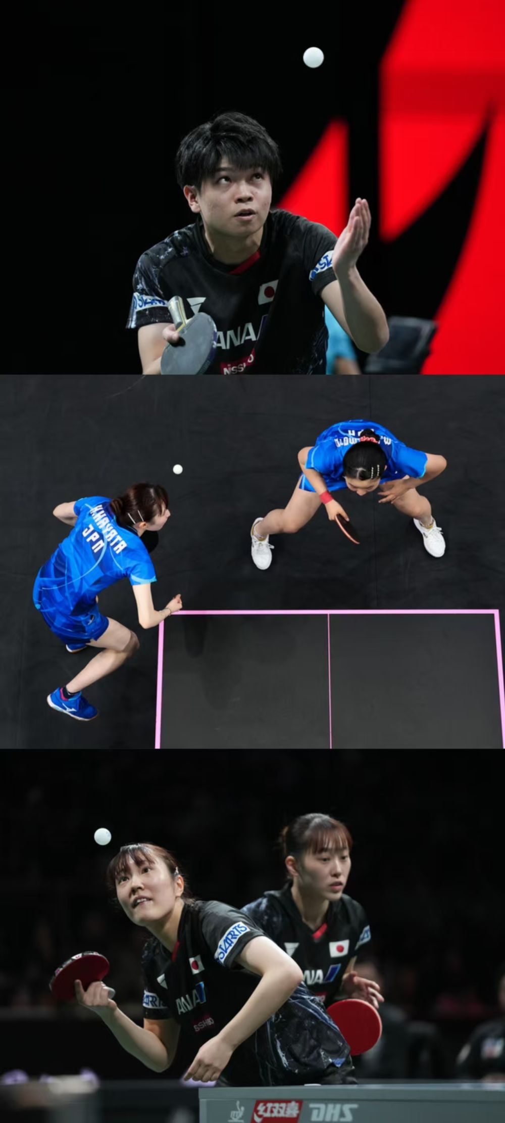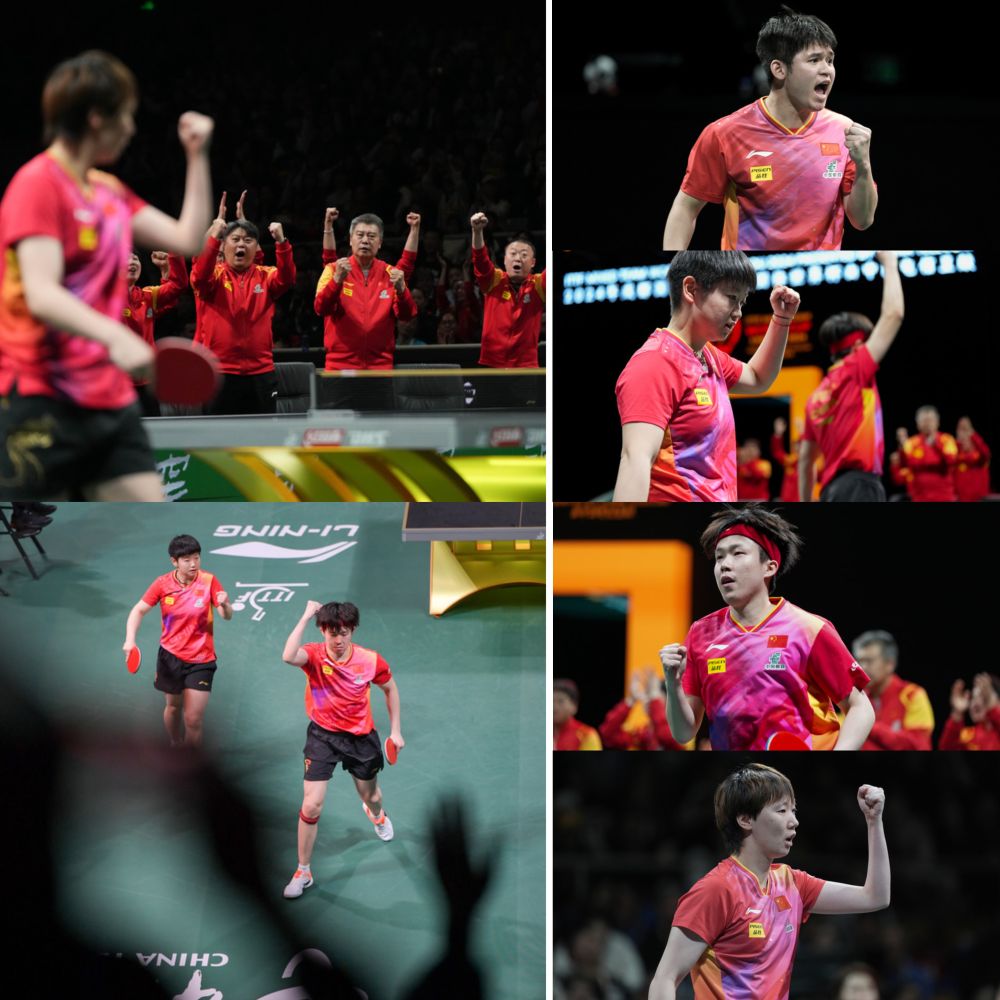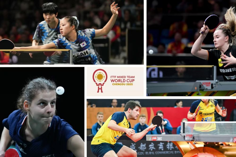 2024年国际乒联混合团体世界杯中的韩国队选手(左上)/德国队员选手(右上)/法国队选手(左下)/瑞典队选手。