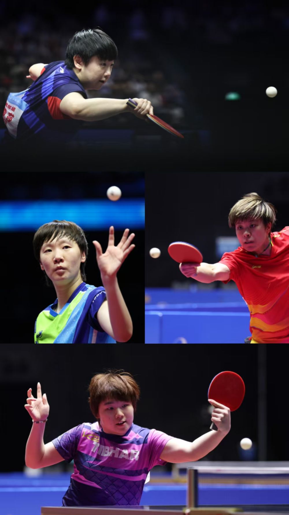 孙颖莎(上)/王曼昱(中左)/王艺迪(中右)/蒯曼。