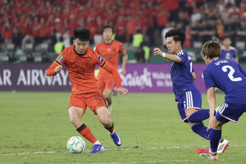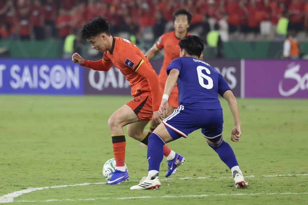 当地时间1月24日,在沙特阿拉伯吉达举行的2026年亚足联U23男足亚洲杯决赛中,中国队迎战日本队。上半场结束,中国队0比2暂时落后。