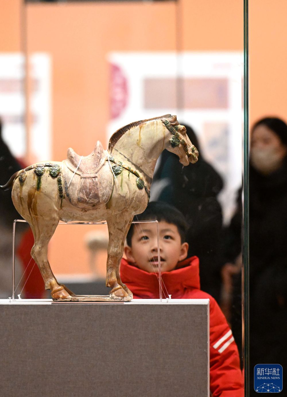 ↑ 2月10日,小朋友在河北博物院参观“马舞新春——丙午马年全球生肖文化大联展”。新华社发(陈其保摄)