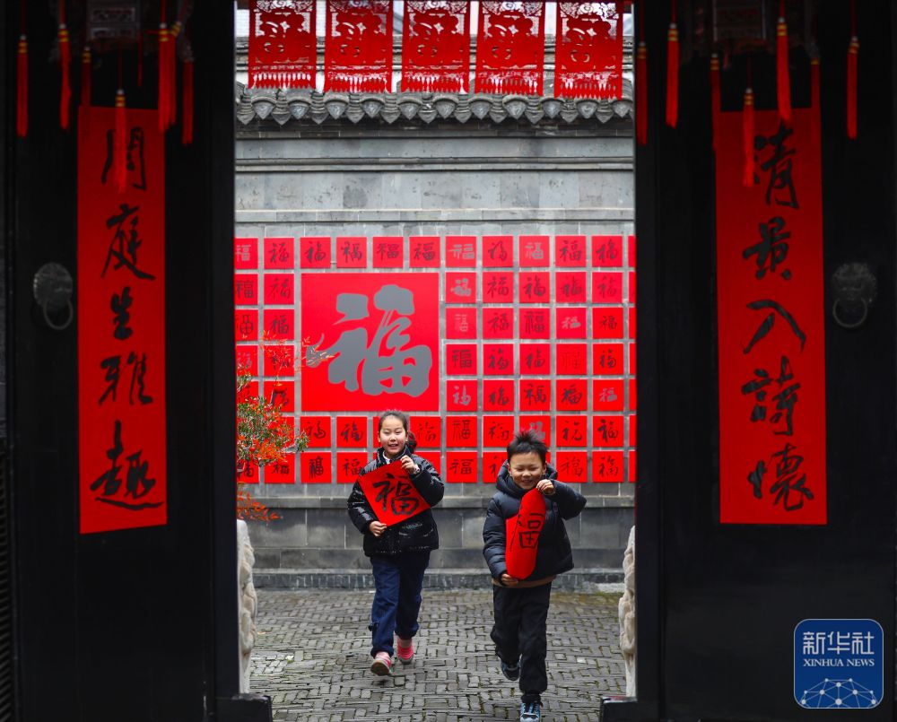 ↑ 2月10日,小朋友在江苏省海安市博物馆(韩公馆)游玩。新华社发(顾彬斌摄)