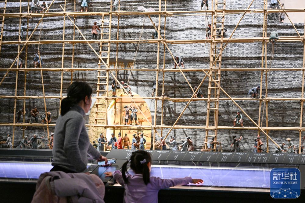 ↑ 2月12日,小朋友和家长在南京城墙博物馆参观。新华社发(杨素平摄)