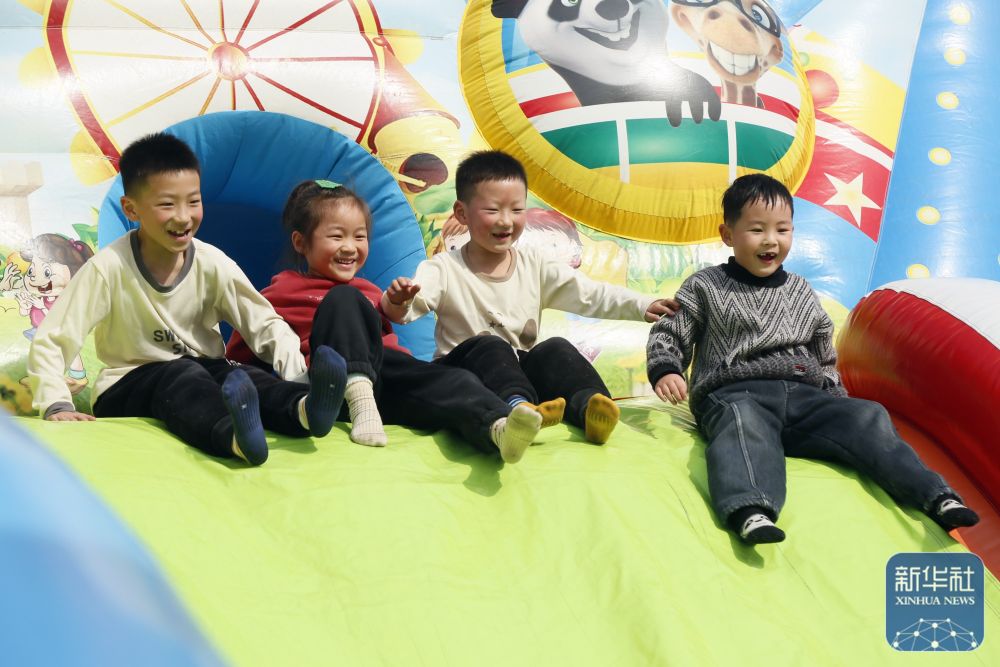 ↑ 2月13日,小朋友在河南省洛阳市汝阳县刘伶广场玩耍。新华社发(康红军摄)