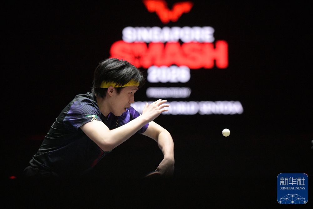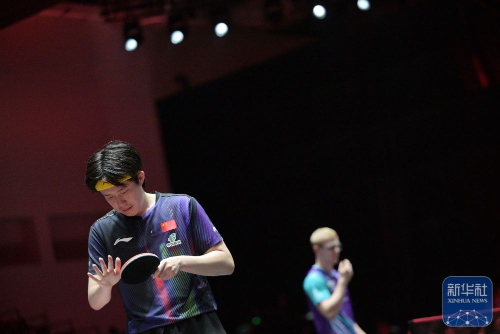 ↑ 王楚钦在比赛中回球。新华社发(邓智炜摄)