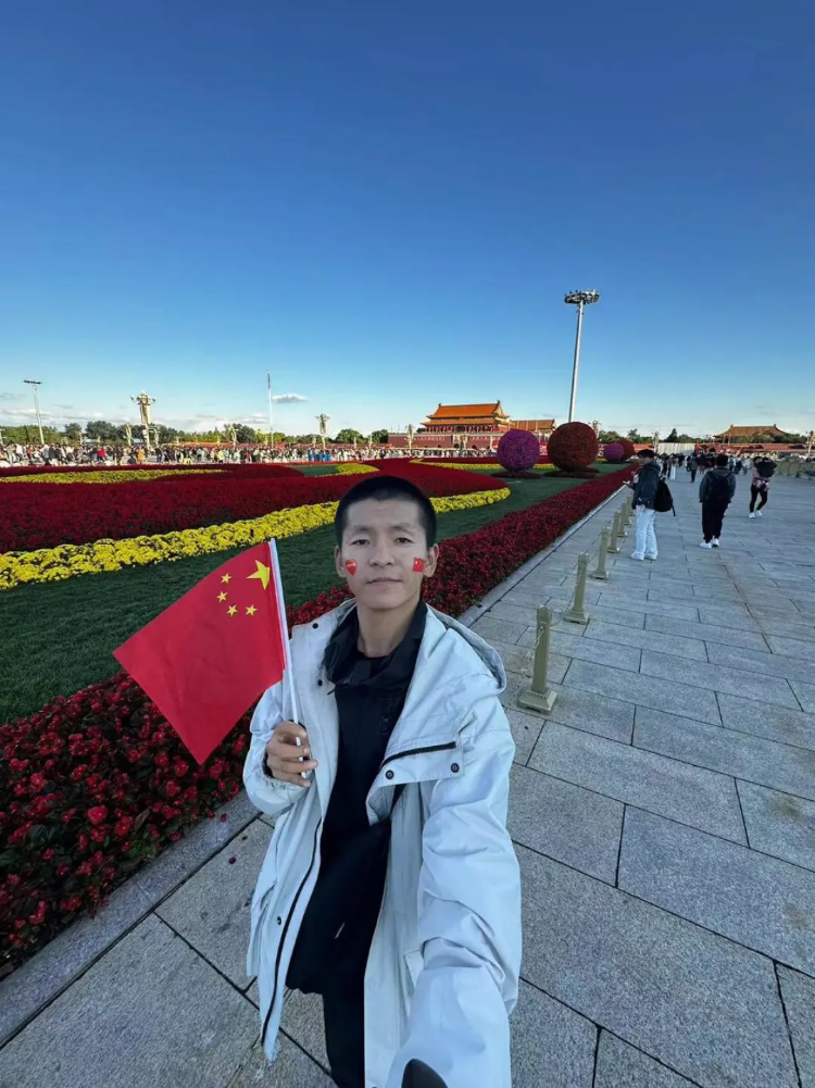 9月28日,徒步84天后,甘肃小伙马伟到达北京,并在10月1日在天安门广场观看升旗仪式,“万人合唱国歌的时候眼泪差点流出来。”