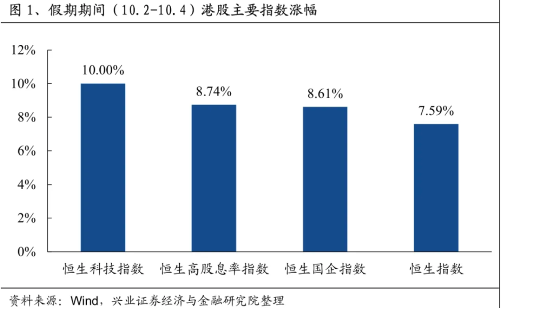 10月2日—10月4日,港股市场持续大涨,恒生指数涨幅达7.59%,恒生科技指数的涨幅达10%。