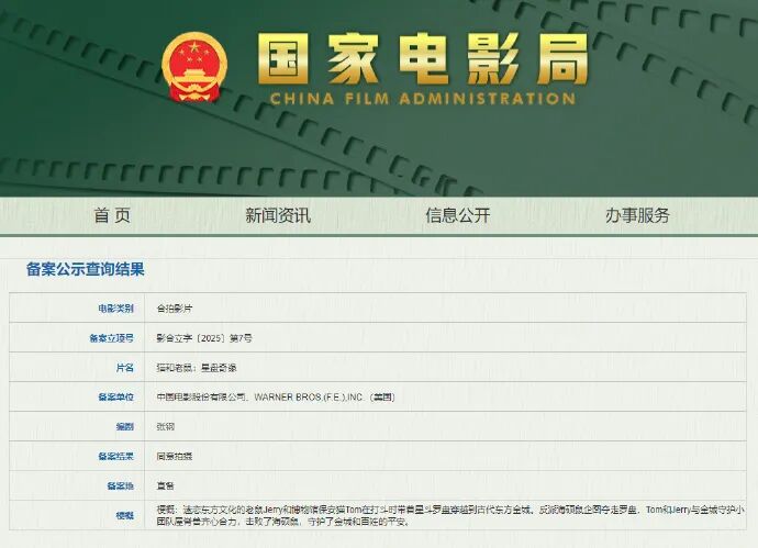 3月7日,国家电影局发布关于2025年2月上全国电影剧本(梗概)备案、立项公示的通知。由张钢担任编剧的电影《猫和老鼠:星盘奇缘》备案立项,影片为合拍影片,由中国电影股份有限公司联手华纳兄弟进行开发。