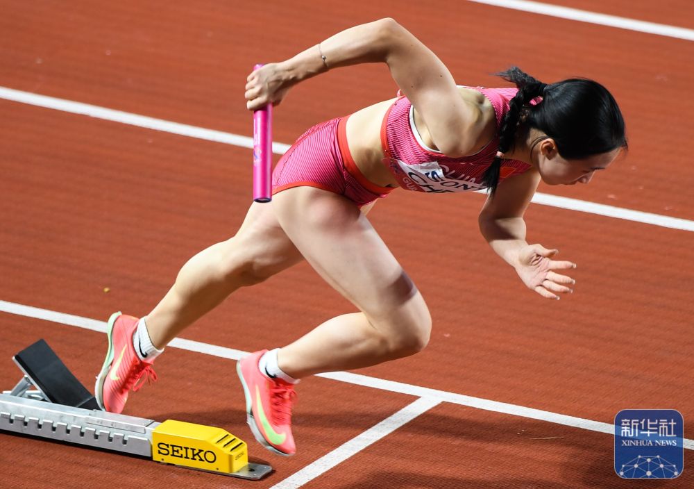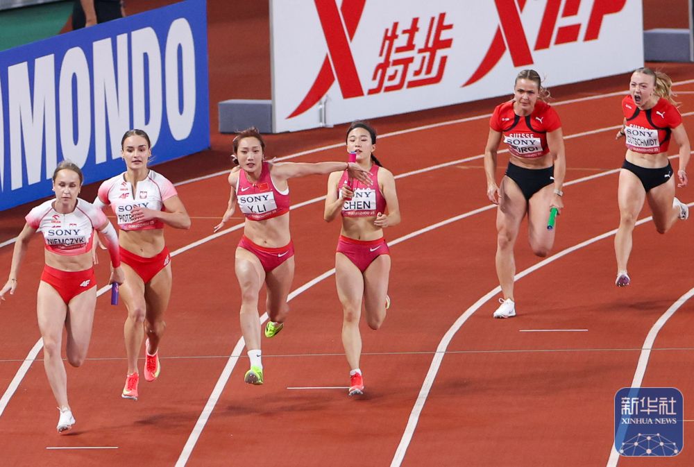↑ 中国队第一棒选手陈妤颉起跑。新华社记者 邓华 摄