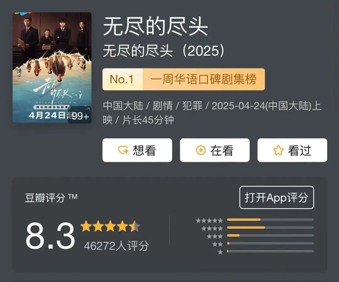 国产剧中,专注于未成年人司法保护现状的作品较为罕见。《无尽的尽头》精准的选题切入,成功填补了这一题材在影视领域的空白。