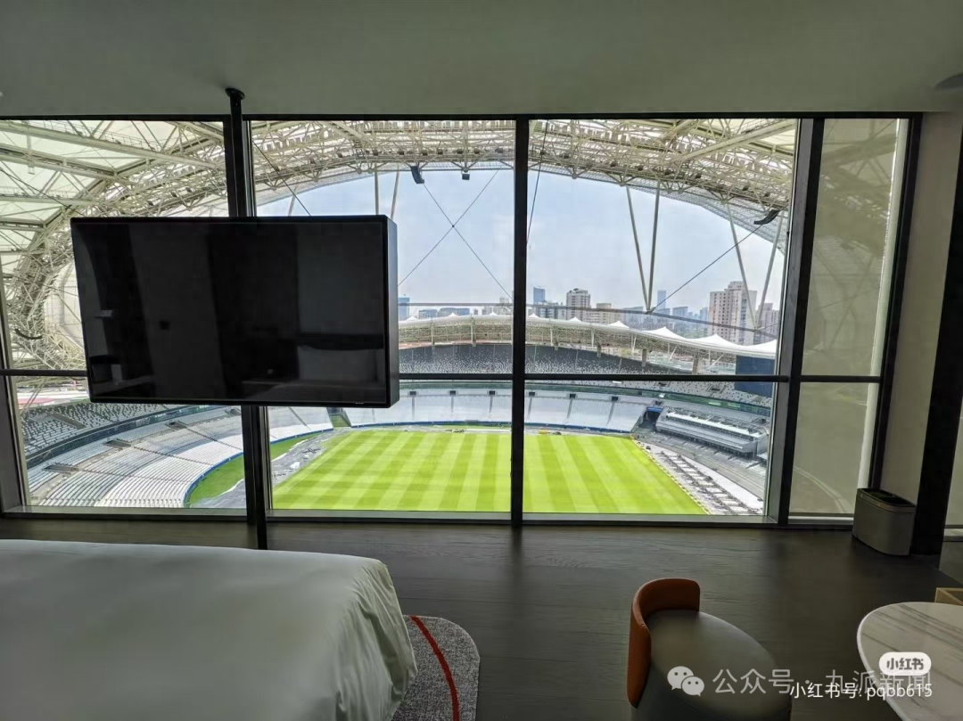日前,有网友在社交平台上发帖称,自己入住的一家上海酒店嵌在能容纳8万人的体育场里,行政房内可以看到球场,“不买演唱会门票了,这个酒店躺房间就能看”。