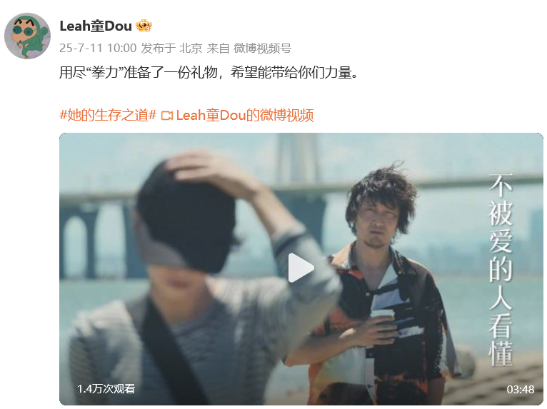 窦靖童发布MV写道:“用尽‘拳力’准备了一份礼物,希望能带给你们力量。”