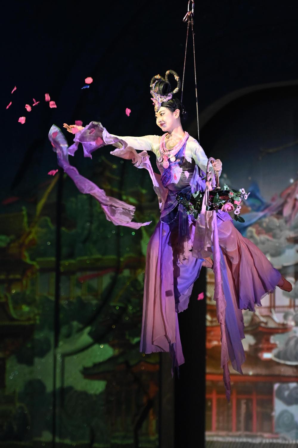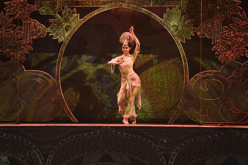 《乐动敦煌》借助对莫高窟壁画、藏经洞古籍的解读梳理,活化敦煌古乐器、古乐谱研发成果,通过全息投影等手段,结合专业演员的表演,将莫高窟壁画中的乐舞盛景生动再现,让观众沉浸式感悟传承千年的敦煌乐舞文化魅力。新华社记者 范培珅 摄影报道