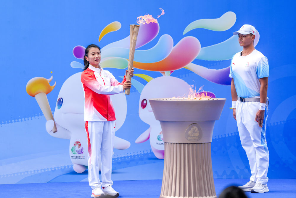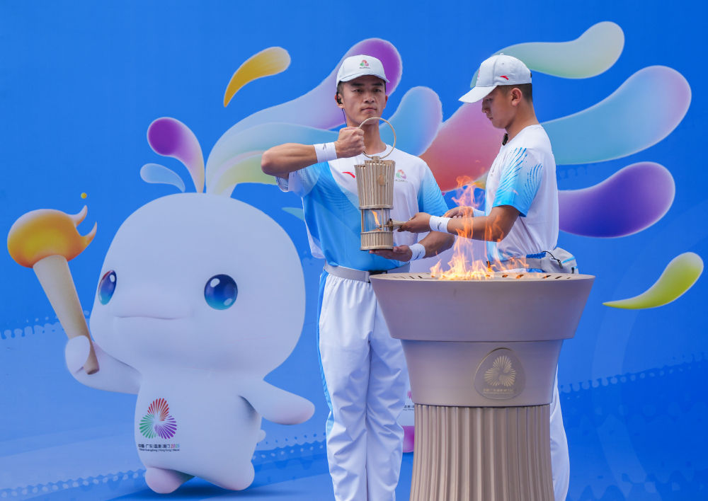 火炬上天,“夸父”接棒 十五运会火炬四城同传燃动湾区