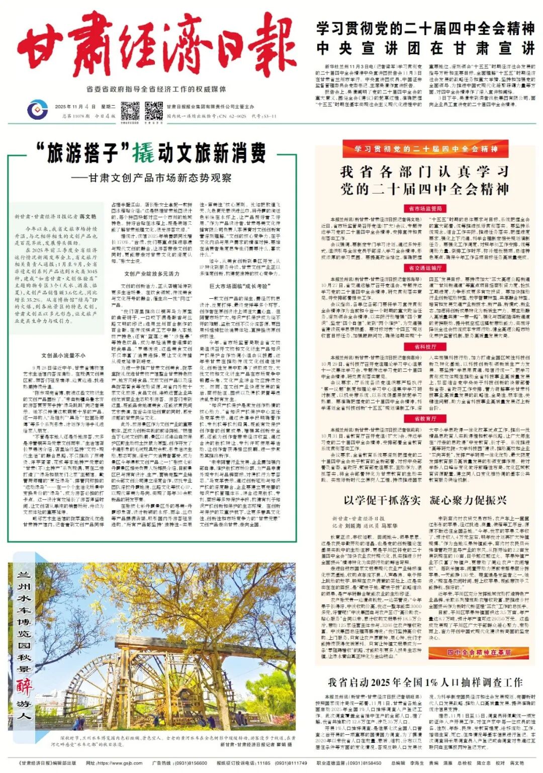在2025年前三季度全省经济运行情况新闻发布会上,省文旅厅相关负责人通报:1月至9月,全省非遗文创系列产品达到8大类3045种,建成“如意甘肃·文创体验店”主题购物专区3个(天水、酒泉、临夏),文创产品销售额3.6亿元、同比增长35.2%。从省博物馆“绿马”IP的火爆,到各地景区的特色文创,甘肃文创正以多元形态,让文旅产业更具生命力与吸引力。