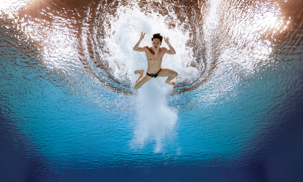 11月5日,山东队选手练俊杰在第十五届全国运动会跳水男子个人全能10米跳台比赛中。新华社记者 夏一方 摄