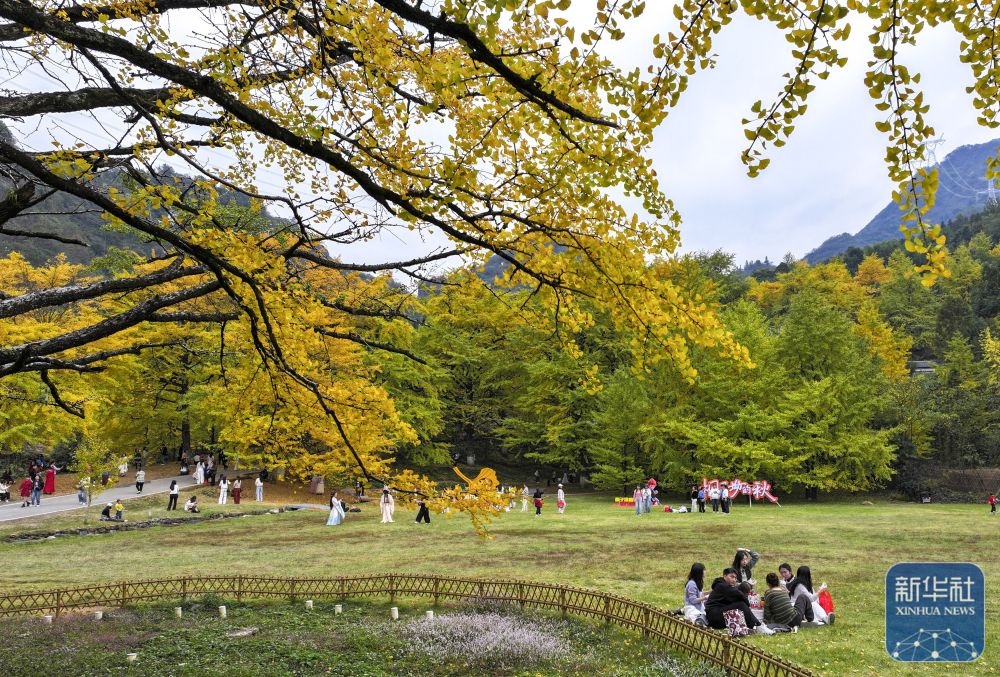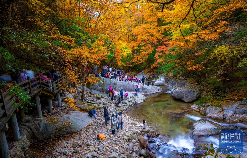 ↑ 11月15日,游人在四川省巴中市光雾山旅游区赏景。新华社发(付海旭摄)