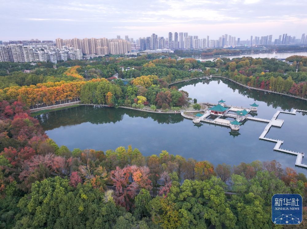 ↑ 11月13日在湖北省武汉市东湖风景区拍摄的初冬景色(无人机照片)。新华社发(赵军摄)