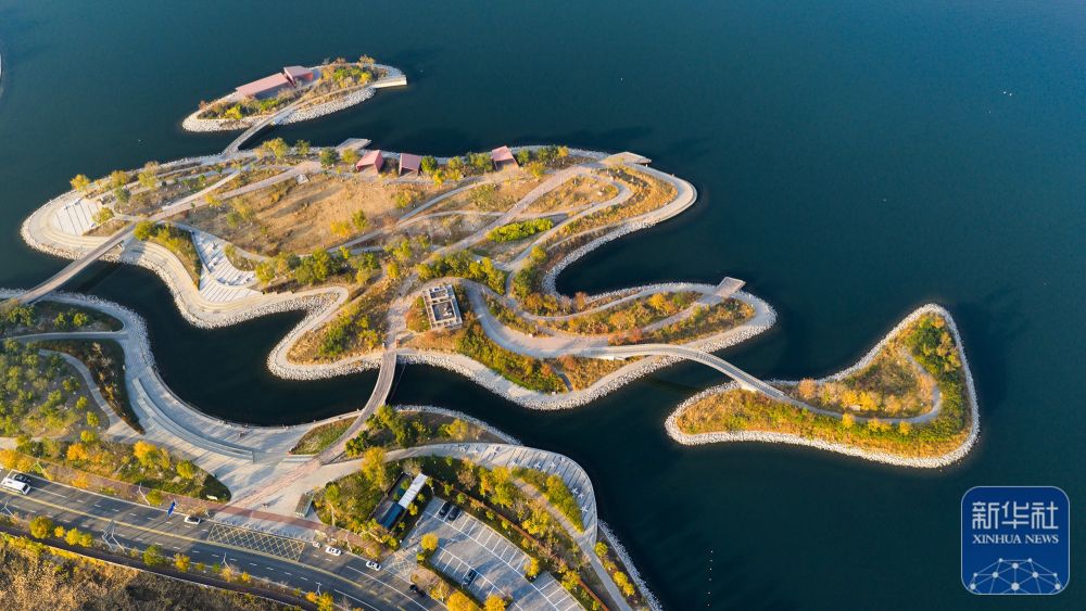 ↑ 这是11月14日在天津市滨海新区中新天津生态城拍摄的初冬景色(无人机照片)。新华社发(杜鹏辉摄)