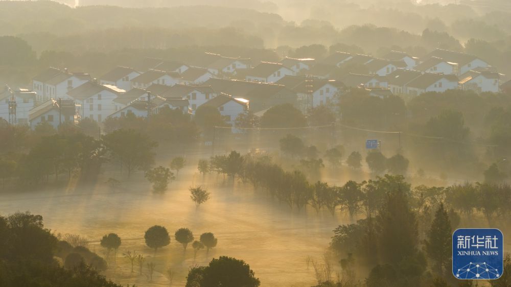 ↑ 11月15日拍摄的江苏省昆山市周庄镇祁浜村晨景(无人机照片)。新华社发(王须中摄)