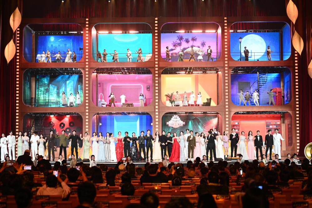 ↑11月15日拍摄的颁奖典礼现场。打破中国影史票房纪录的《哪吒之魔童闹海》斩获最佳美术片奖。