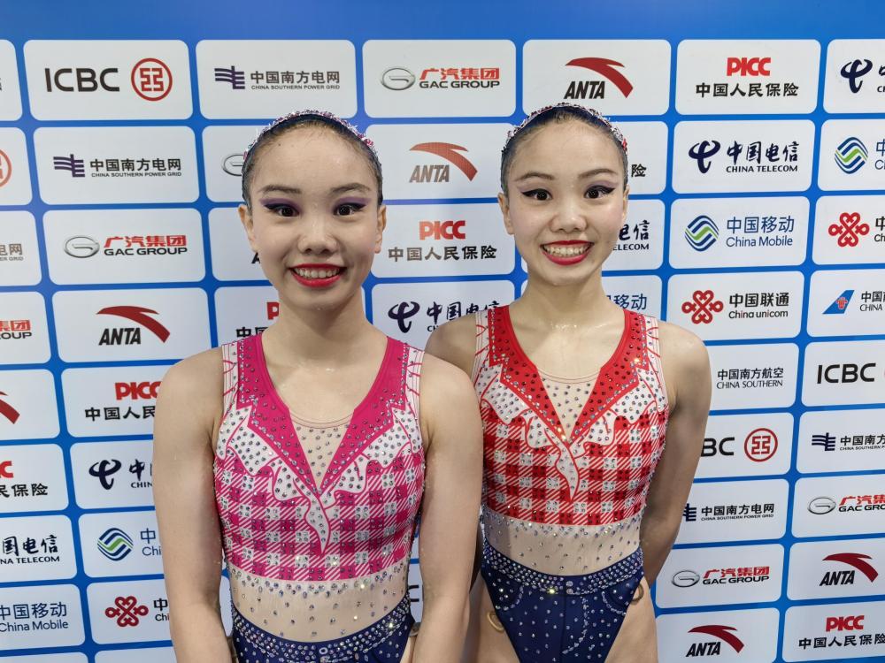 ↑11月15日,广东队组合王柳懿/王芊懿在双人自由自选比赛中。新华社记者 陈钟昊 摄