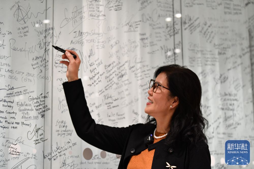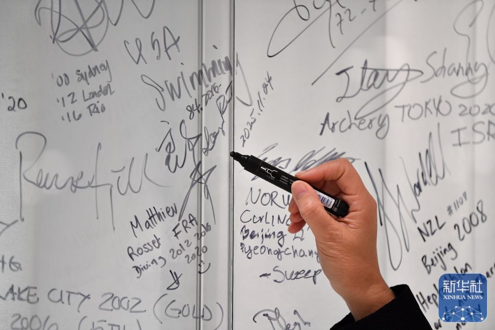 ↑ 郎平颁奖仪式后在签名墙上签名。