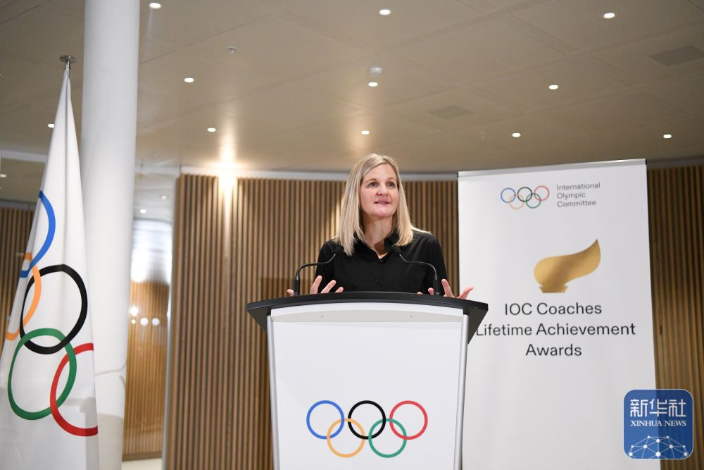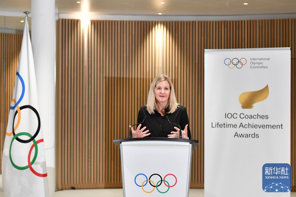 ↑ 国际奥委会主席考文垂在2025年度国际奥委会教练员终身成就奖颁奖仪式上致辞。