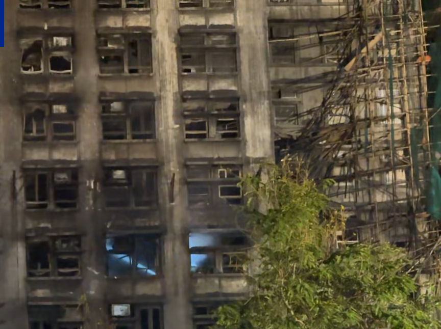 总台记者 朱丹:在我身后的就是香港新界发生火灾的宏福苑。大家可以看到,目前明火已经基本被扑灭,留下的是已经烧得焦黄发黑的大楼,目前搜救行动仍然在进行。根据香港消防处的最新数据,此次火灾目前至少造成55人死亡。