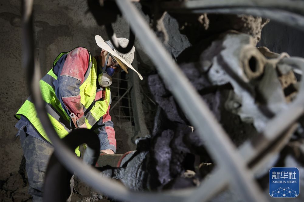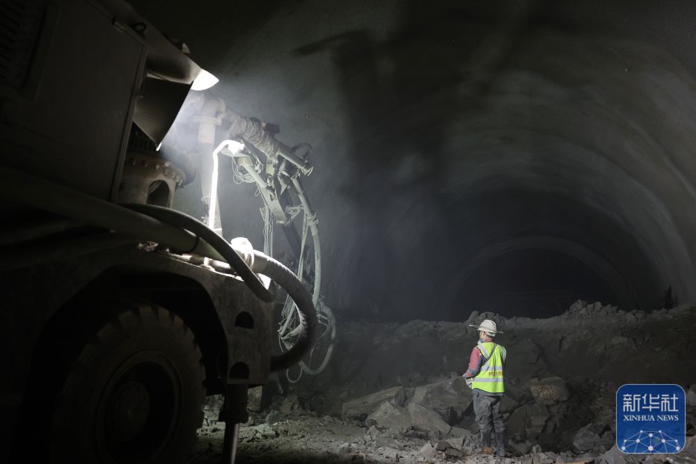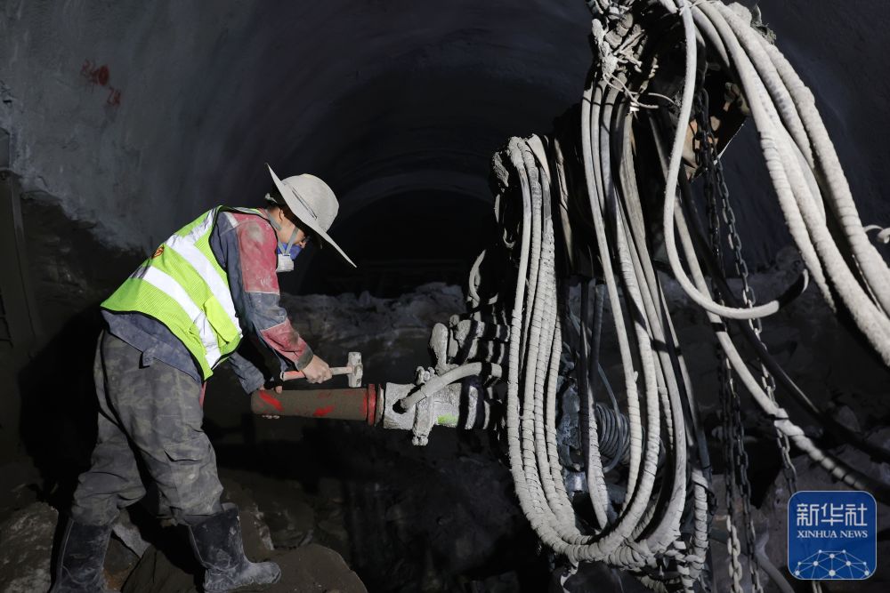 ↑ 12月2日,中铁二十局的施工人员在兰永临高速公路辛家隧道内作业。