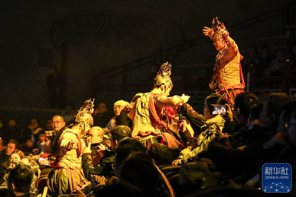 ↑ 12月15日晚,游客观看大型洞窟式沉浸体验剧《乐动敦煌》。