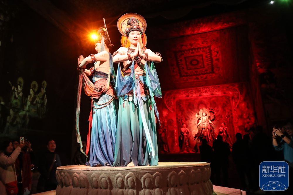 12月15日晚,大型洞窟式沉浸体验剧《乐动敦煌》在甘肃省敦煌市持续上演,为游客展现了敦煌乐舞的独特魅力。该剧全年常态化演出,弥补了当地冬季无驻场演艺项目的缺憾,为“冬游敦煌”增添了新活力。