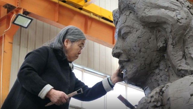 窗外的黄河奔腾不息,88岁的何鄂还是愿意和泥土石头打交道。她的生命,早已和西北这片土地相连。“我能够奉献给时代和人民的,唯有雕塑。”