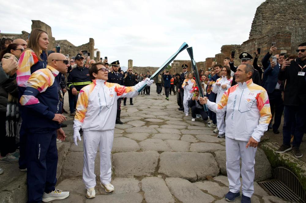 庞贝以其保存完好的古罗马遗迹闻名。当天在此举行的火炬传递活动吸引了不少人士现场关注。