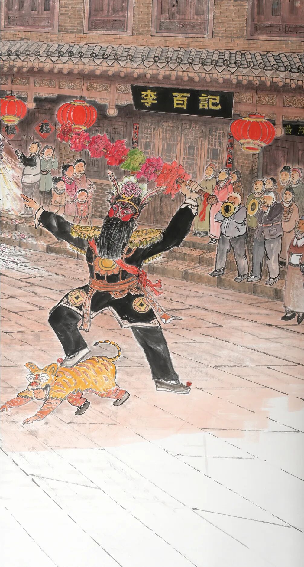 这些根植于民间的文化记忆,在梁宗文的笔下不再是抽象的概念,而是成为可感、可触的艺术形象。他曾说:“画民俗不是画热闹,而是画人心啊!”百姓在民俗活动中寄托的情感,才是民俗文化真正的灵魂。”这份对民俗的深刻理解,让他的作品超越了地域的局限,成为对中华民间文化的一次深情礼赞。