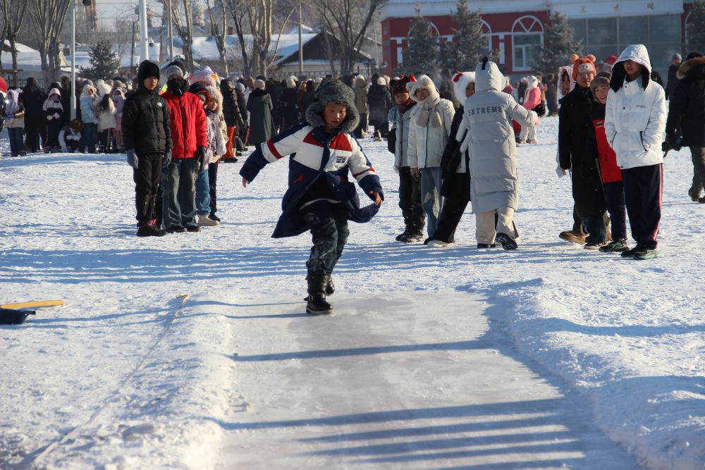三年三班的白欣玉最喜欢的是“打出溜滑”比赛,“想滑得远可难了,鞋底很重要,而且还得滑得稳,一不小心就摔倒了。”