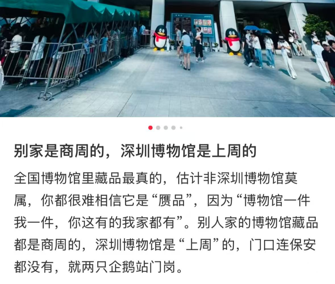 12月27日,深圳博物馆热线服务台工作人员表示,确实有展出生活用品,但博物馆内还是有很多珍贵的古代文物,“最老的藏品来自新石器时代”。