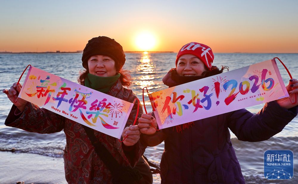 新年第一天,人们伴着朝阳迎接2026年的到来。