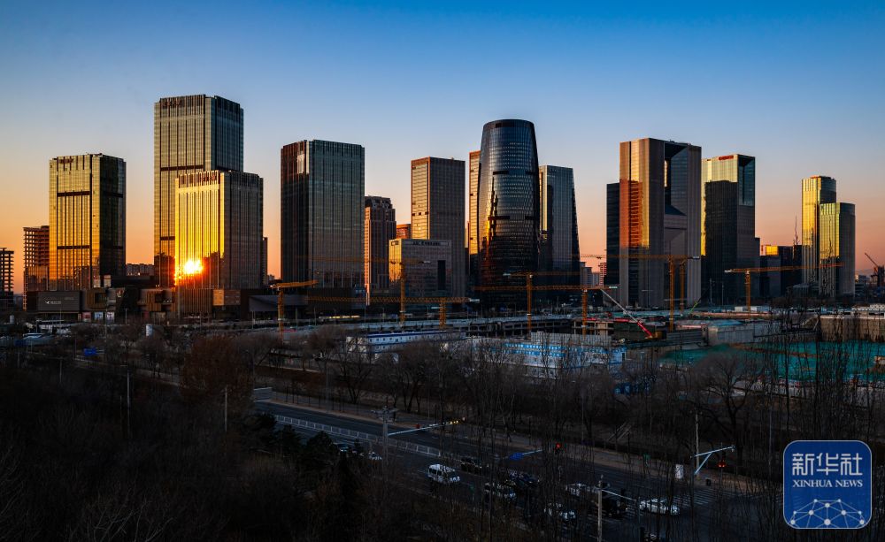 ↑ 2026年1月1日拍摄的晨曦中的北京丽泽商务区。新华社记者 陈益宸 摄