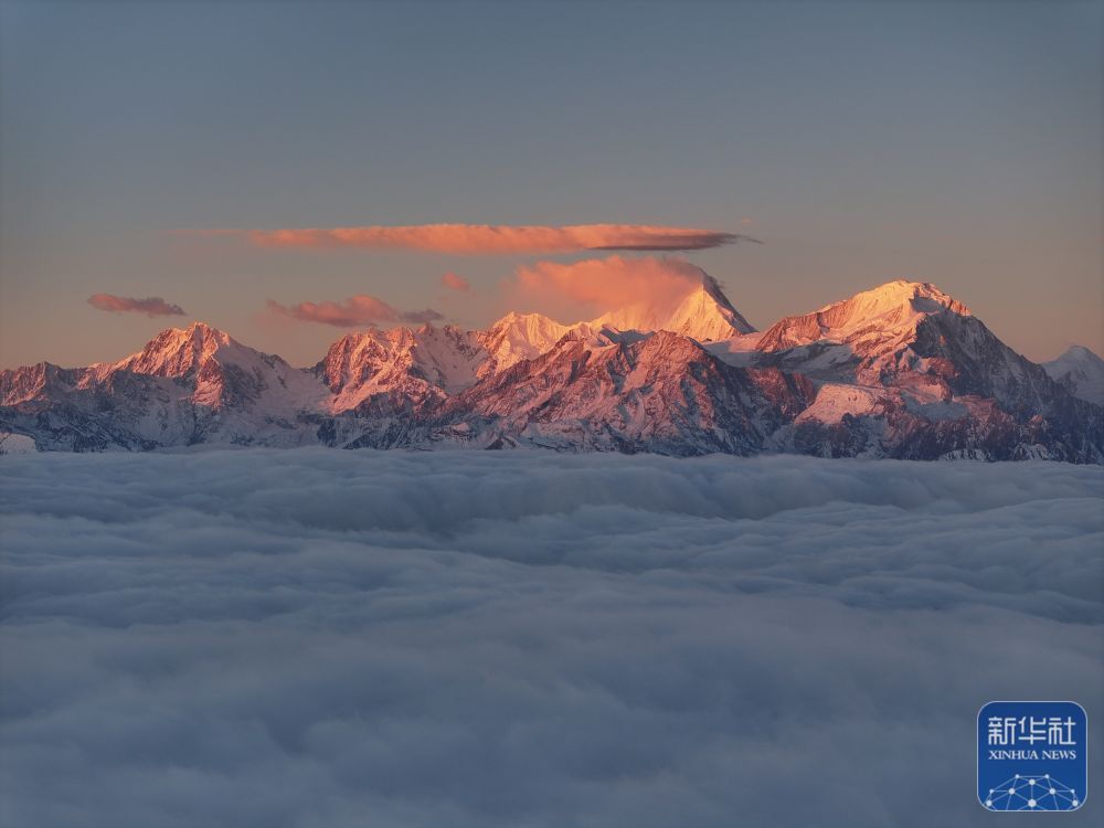 ↑ 2026年1月1日在四川省泸定县拍摄的日出时分的贡嘎雪山。新华社记者 江宏景 摄