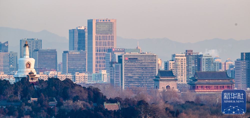 ↑ 2026年1月1日清晨拍摄的北京钟鼓楼和北海公园白塔。新华社记者 陈晔华 摄