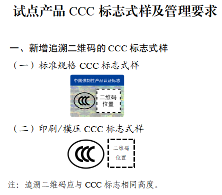 自2026年3月起,试点产品范围内新获得CCC认证证书的产品型号,应标注CCC追溯二维码后,方可出厂、销售、进口或者在其他经营活动中使用。