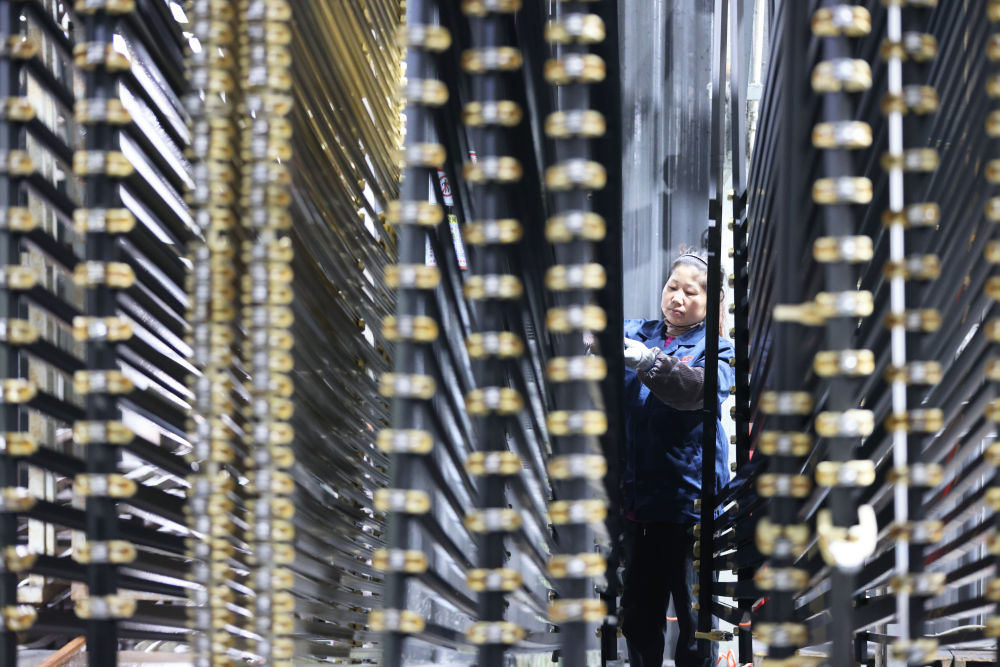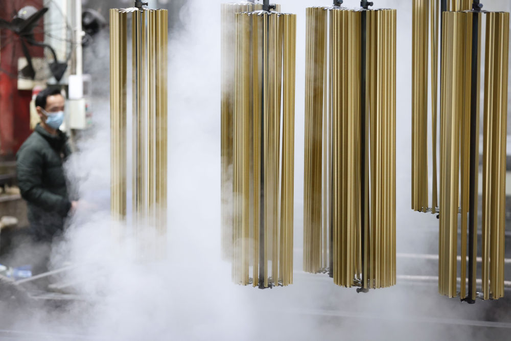 ↑ 1月19日,工人在位于浙江省湖州市德清县乾元镇的浙江沃德新材料科技有限公司车间赶制铝型材产品订单。新华社发(倪立芳摄)