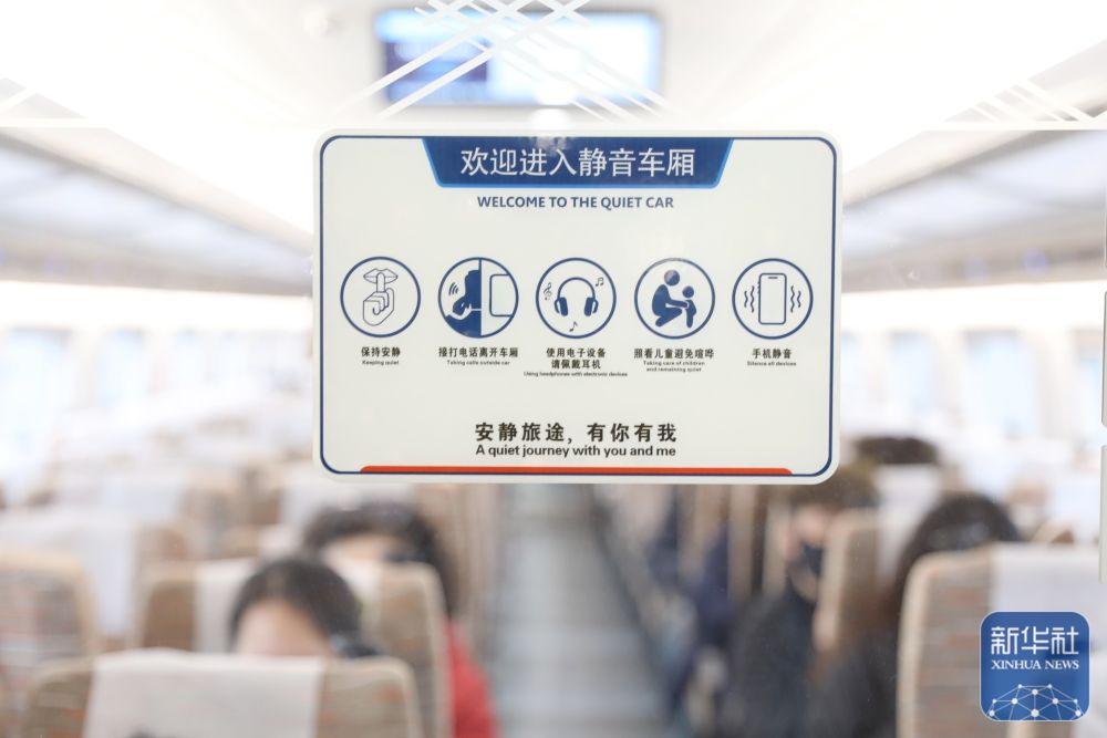2月1日起,“静音车厢”服务将拓展至除动卧列车之外的“D”字头、“G”字头动力分散动车组列车,届时全国铁路提供“静音车厢”服务的列车将增至超8000列。新华社发(祝庆摄)
