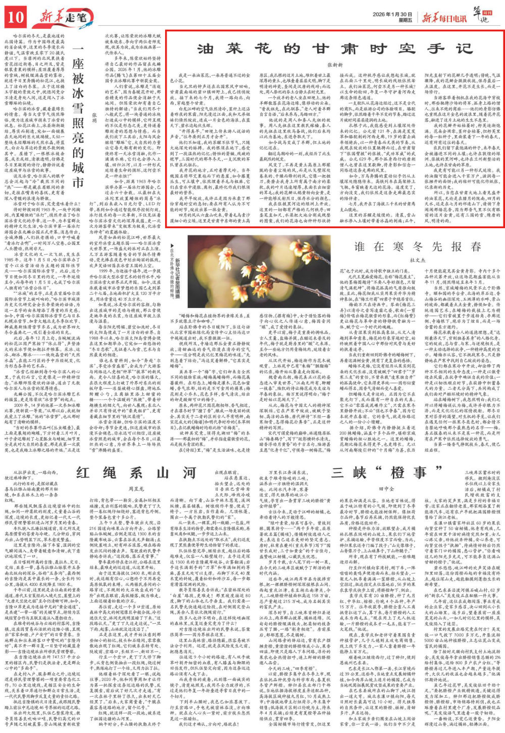“开得真早。”田埂上传来游人说话的声音,“往年要到正月才会开”。